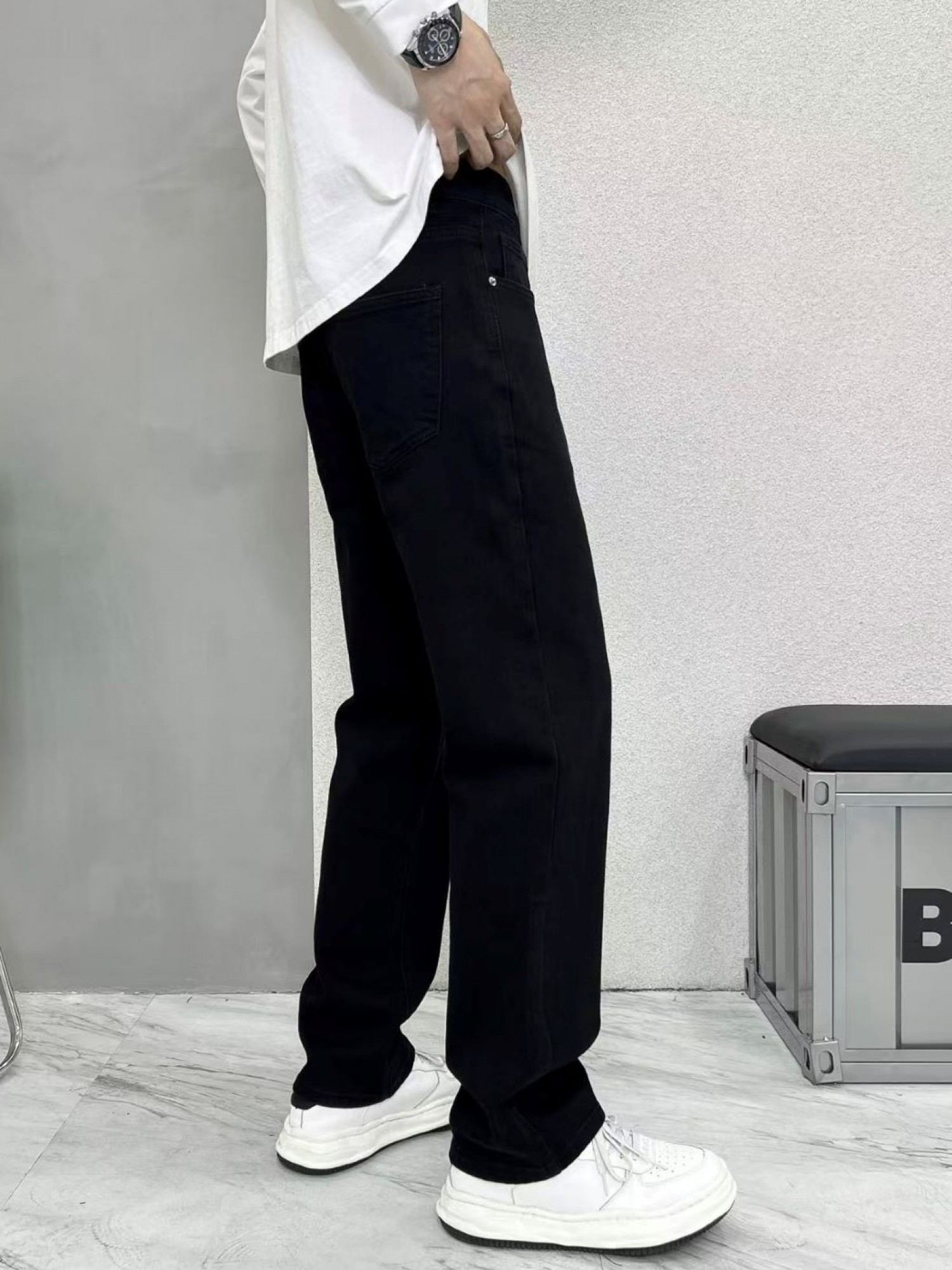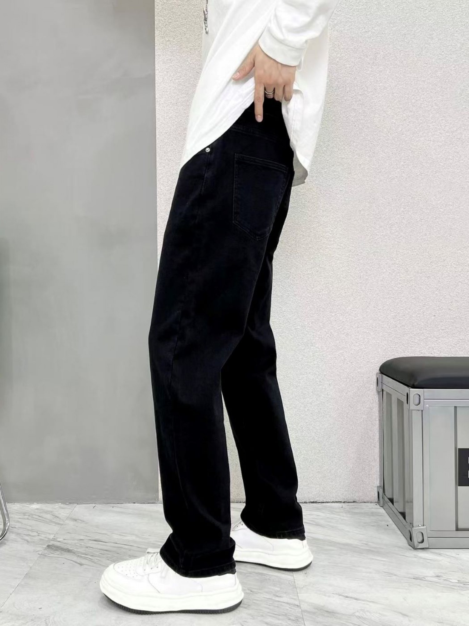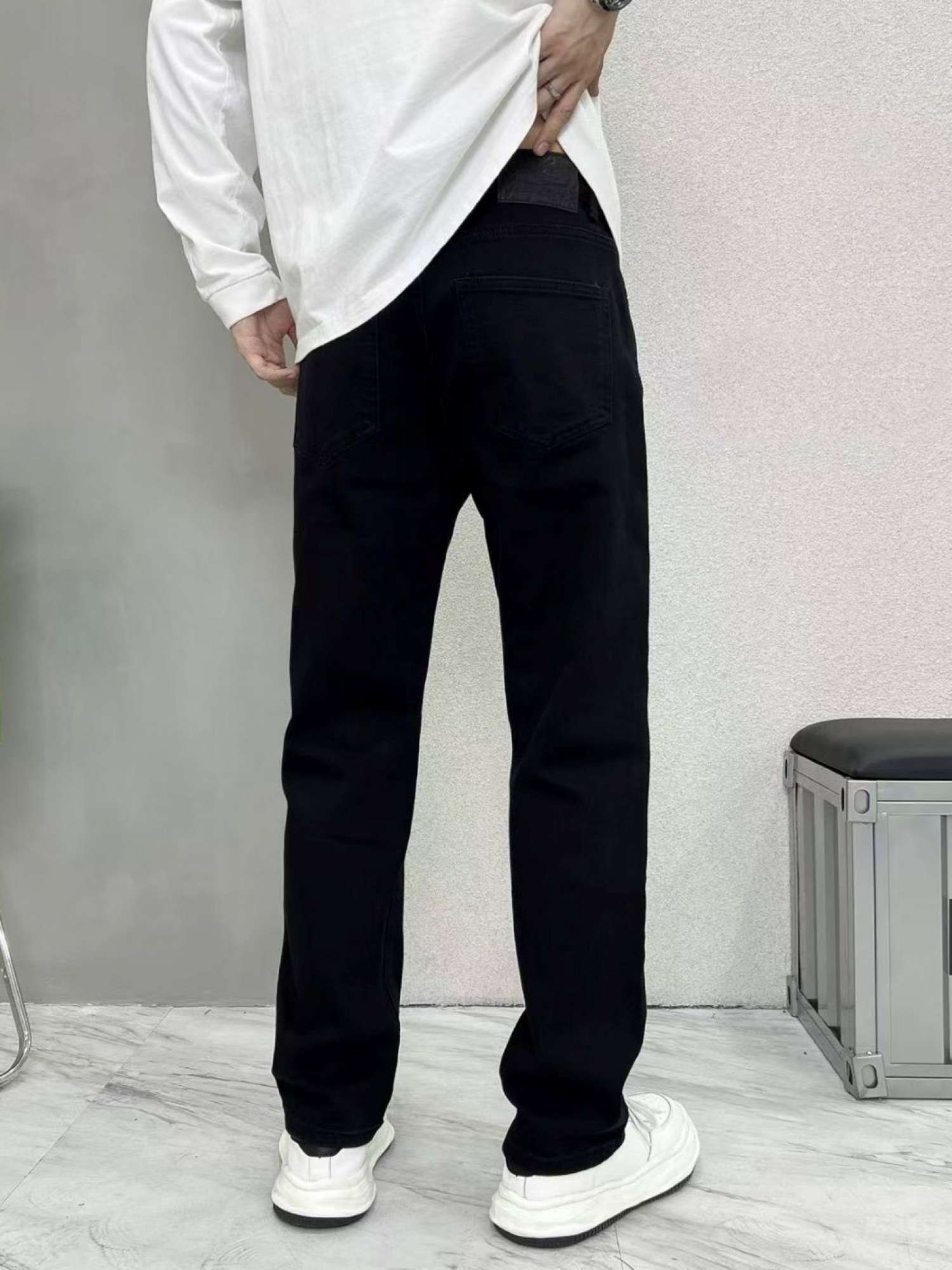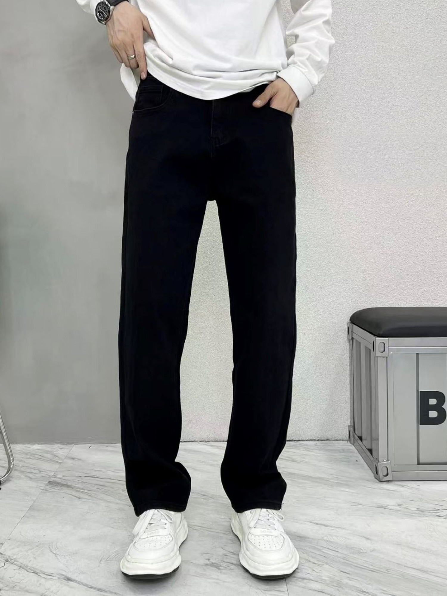 Опис моделі: чорні напівприталені джинси slim - це базова річ кожного гардероба. Вони поєднують в собі комфорт та стиль: вільні в стегнах, але зі злегка завуженим кроєм до низу, що візуально подовжує силует. Модель виготовлена з якісного щільного деніму, який добре тримає форму, але має еластичність. Ідеально пасують як до класичних сорочок, так і до oversize світшотів чи футболок.