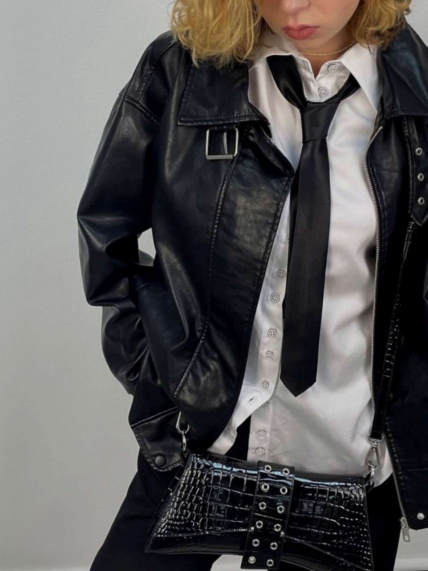 Опис моделі: стильна куртка з якісної екошкіри, що підкорює з першого погляду своїм стильним об'ємним кроєм. Куртка досить повномірна, тому підійде на більші розміри, рекомендуємо орієнтуватися по замірах. Ця куртка чудово підійде на високий зріст. Класичний комір з пряжкою додає брутальності цій моделі.