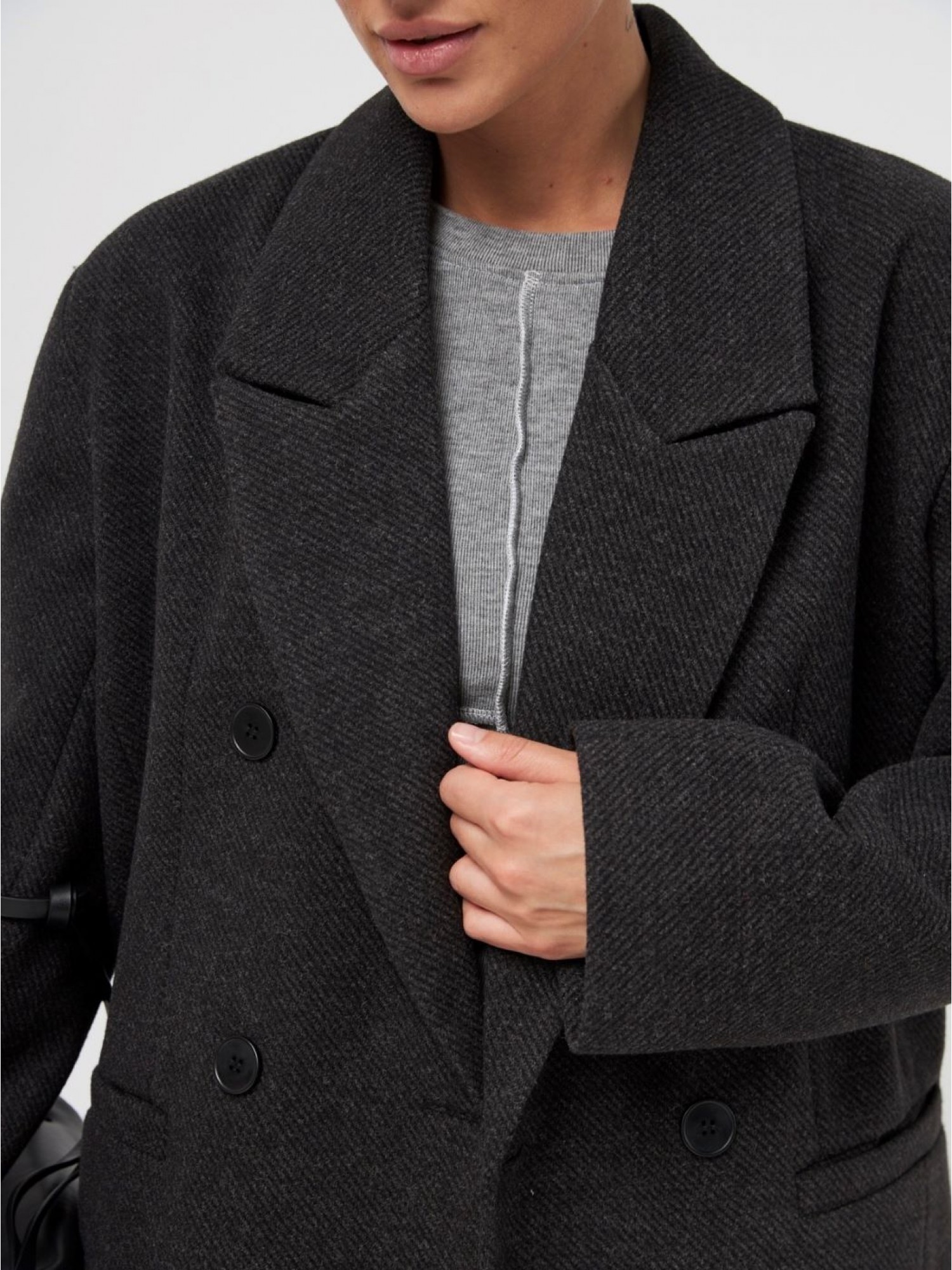 Стильный двубортный пиджак с массивными плечами