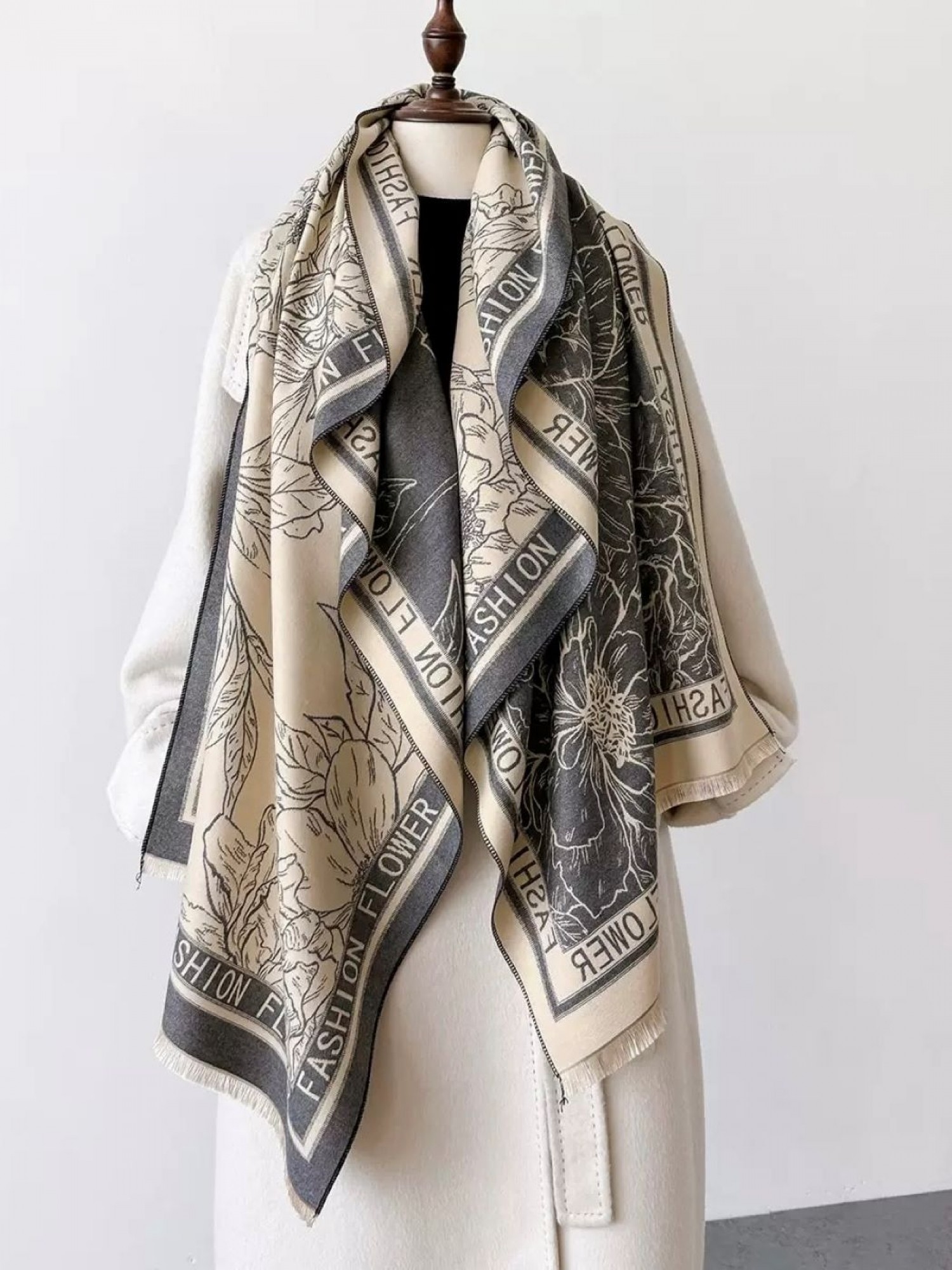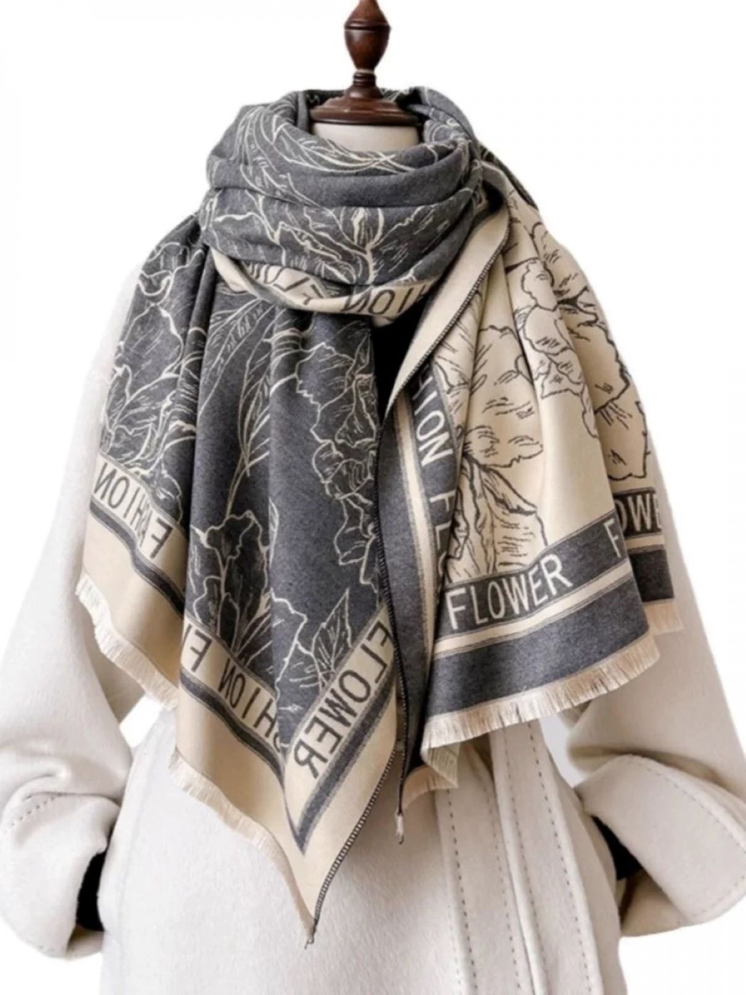 Описание модели: стильный женский палантин с надписью Fashion Flowers — прекрасное дополнение к вашему гардеробу. Выполнен в сером цвете, что позволяет легко комбинировать с различными образами. Декоративная надпись Fashion Flowers и цветочный принт добавляют стиля и женственности. Мягкая, приятная на ощупь ткань дарит тепло и комфорт в прохладную погоду. Идеальный выбор для осенне-зимний сезон.